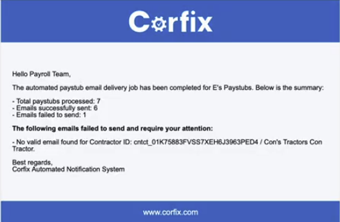 Any failed or skipped paystubs (for example, if a worker’s email is missing)