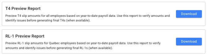 New downloadable T4 and RL-1 preview reports are live in the portal to help identify and correct amount discrepancies early.