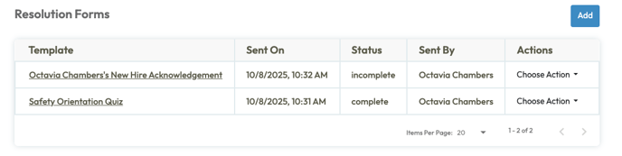 Supervisors or administrators can review and download completed forms under Task > Resolution Forms.