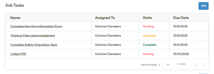 Tip: You can also use Subtasks to break the onboarding process into smaller steps. This makes it easier to monitor progress, track completion of individual items, and ensure nothing is overlooked during the onboarding process.
